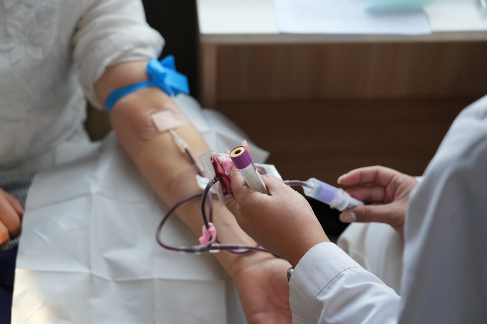 活动现场,采血车停靠在公司综合办公楼前,登记区、体检区、采血区划分清晰,现场秩序井然。党员干部带头站在队伍前列,挽起衣袖配合医护人员登记信息,胸前的党员徽章在阳光下格外醒目;青年职工紧随其后,不少人正拿着献血知识手册相互交流;还有多次参与献血的老职工,主动向首次献血的同事分享注意事项,现场氛围热烈又温馨。