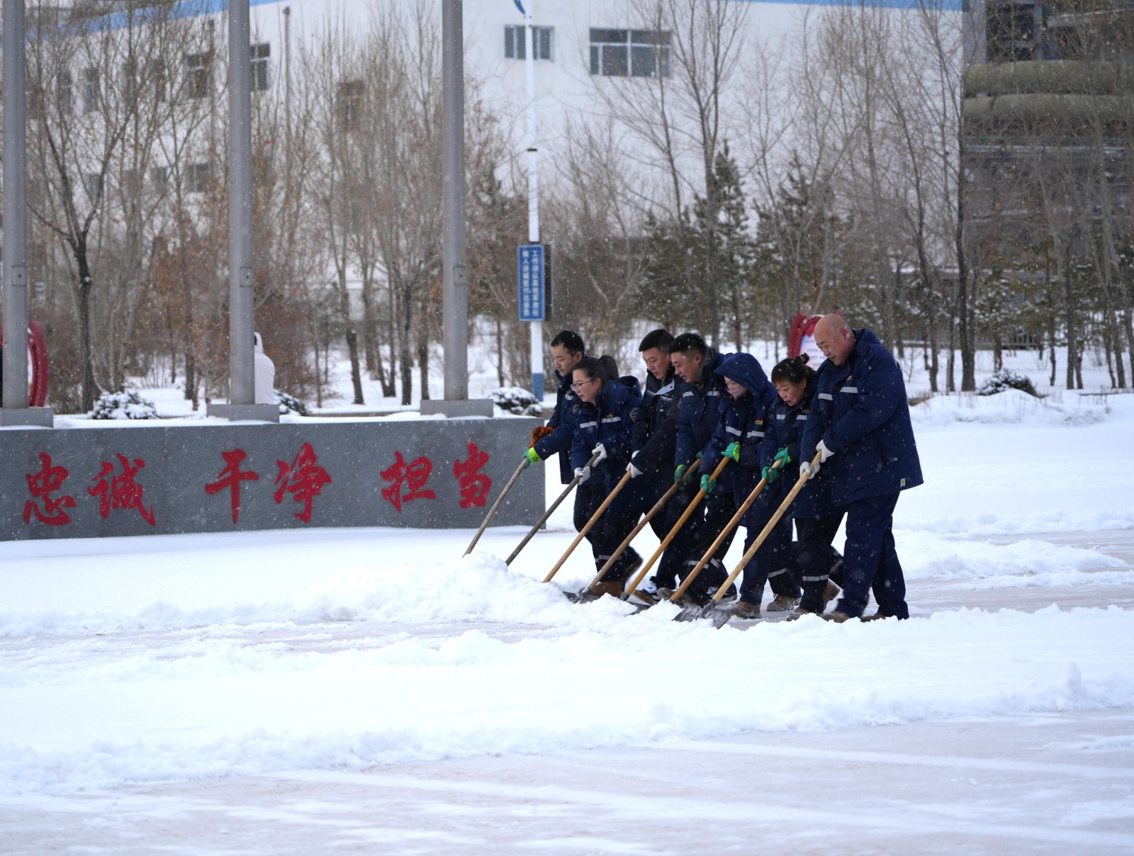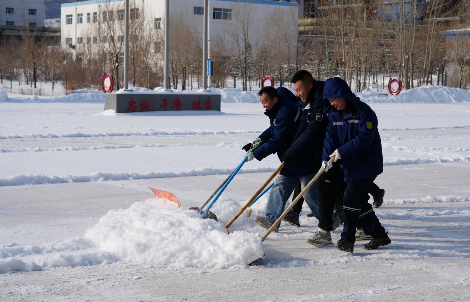 随后,志愿者们手持铁锹等工具,对厂区公共区域积雪进行全面清理。大家不畏辛劳、配合默契,以实干美化环境,用行动诠释奉献,充分展现了新时代青年职工昂扬向上、乐于奉献的精神风貌。活动最后,工作人员为志愿者发放纪念品,对大家的辛勤付出表示感谢。